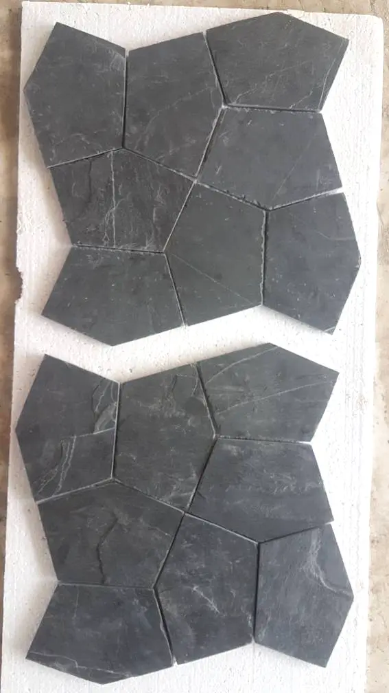 Jak Black Slate is a premium dark black natural stone that delivers a royal and sophisticated touch to any setting. Its surface produces dramatic effects in both natural and artificial light, making it a favorite for high-end interiors and exteriors. Known for its consistent dark hue and durability, it is perfect for creating striking flooring, wall coverings, and decorative mosaics.