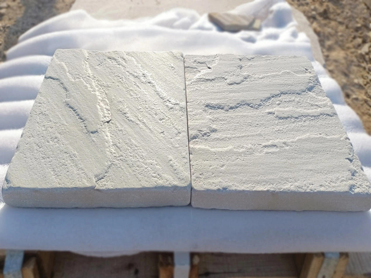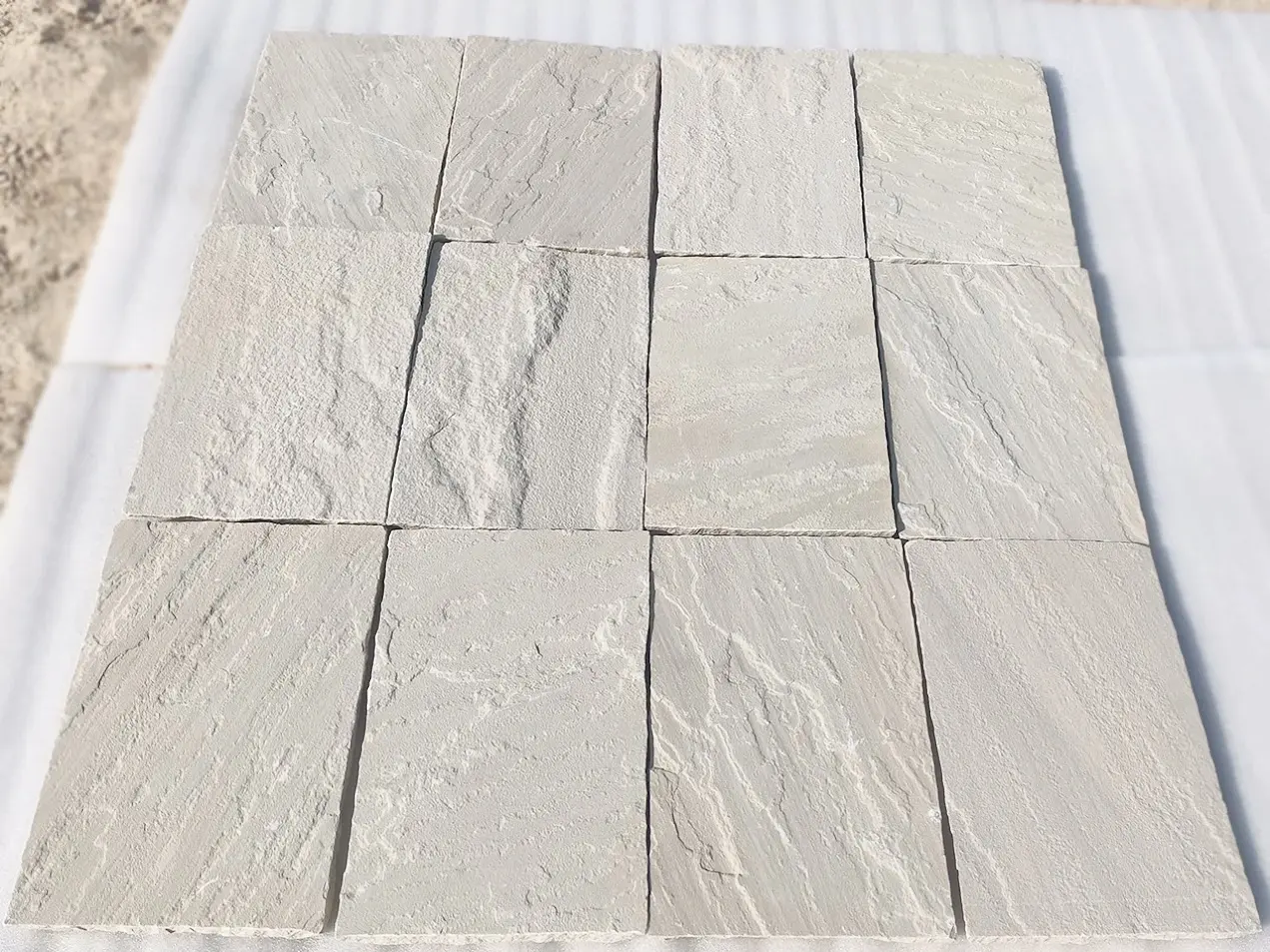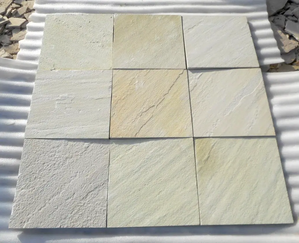 White Mint Sandstone is renowned for its elegant pale mint green color with subtle yellowish to light brown veins. Its clean, bright appearance makes it perfect for contemporary architectural projects, brightening up dark patios, pathways, and interiors. Known for its even texture and durability, it withstands harsh weather conditions while maintaining its sophisticated look.