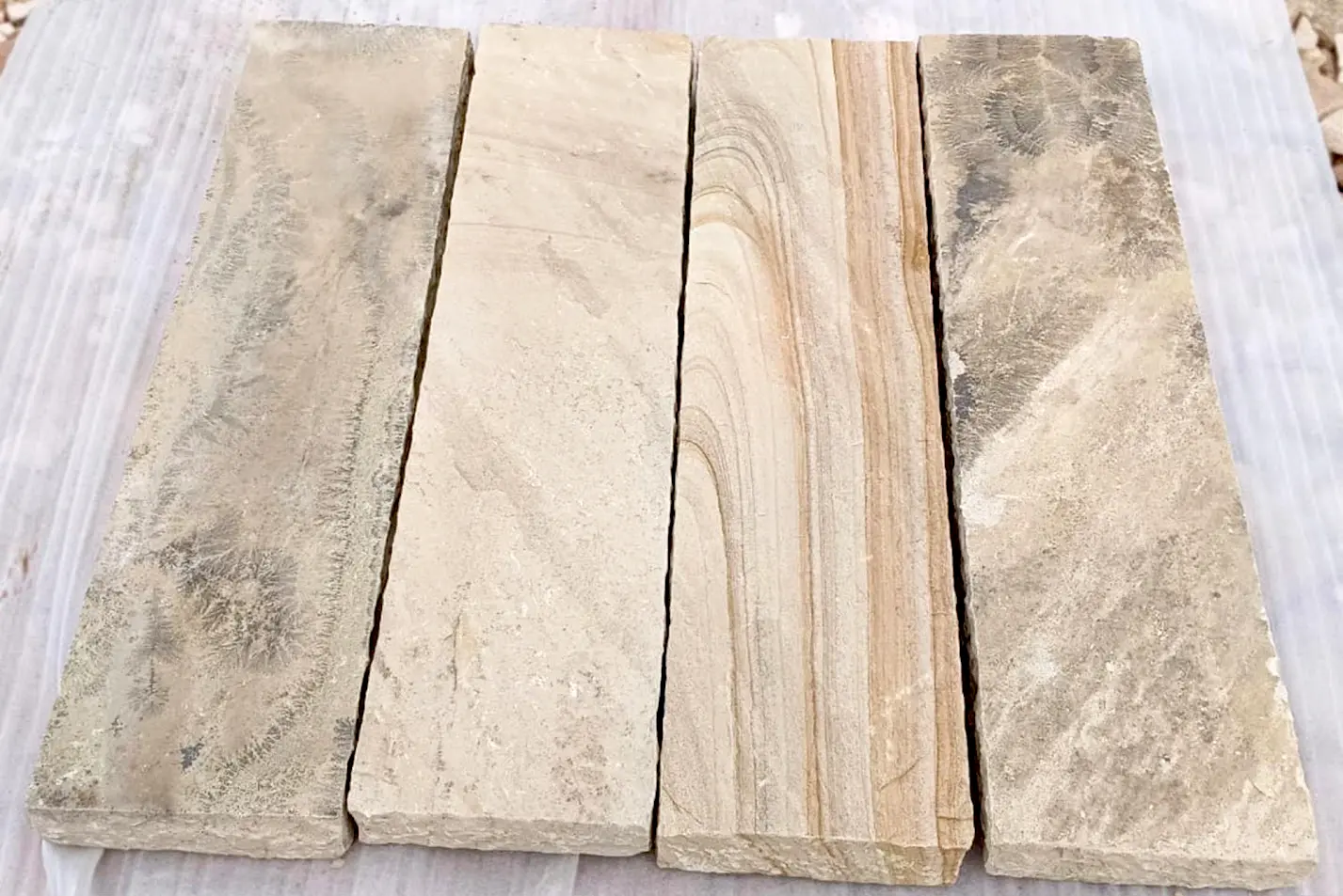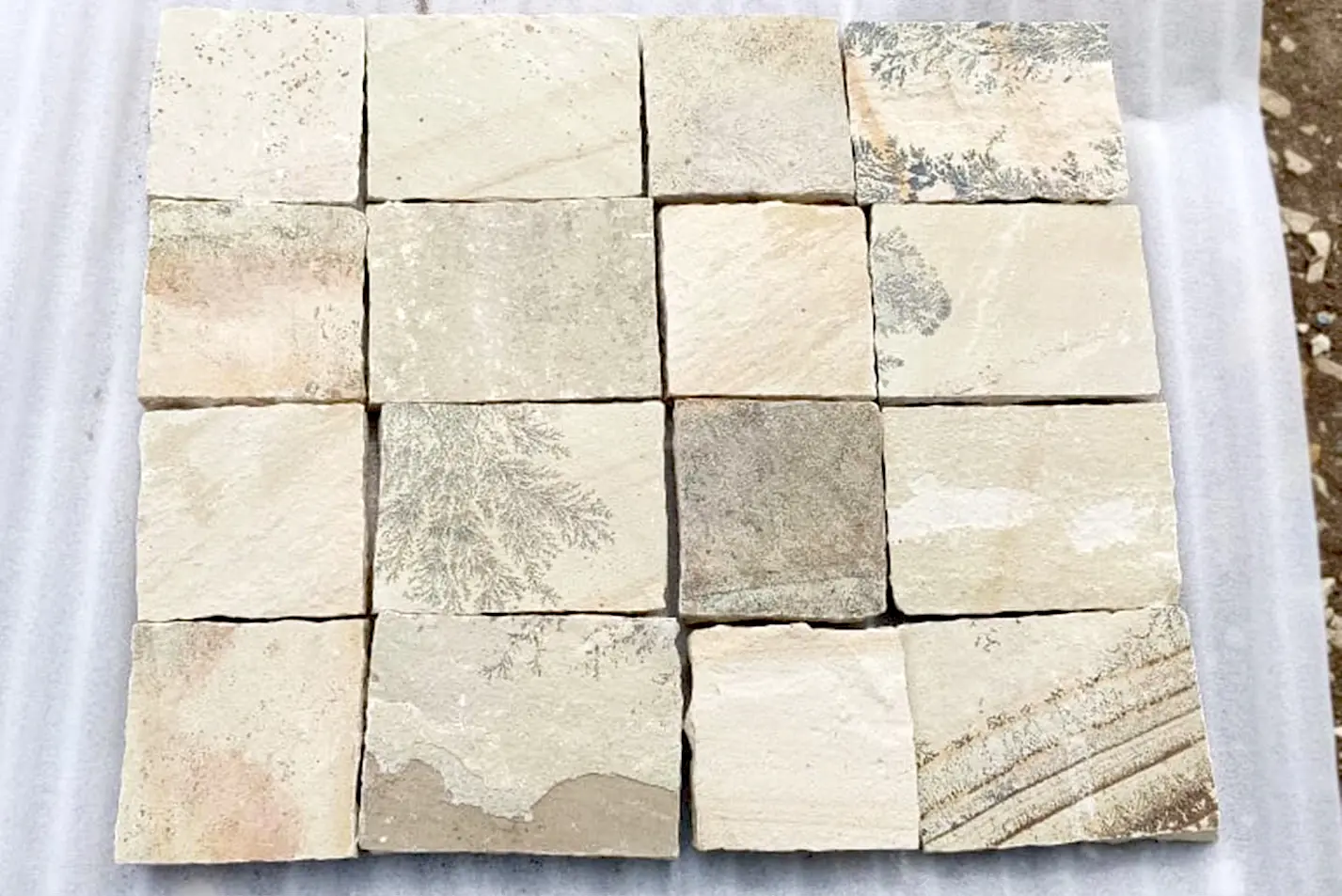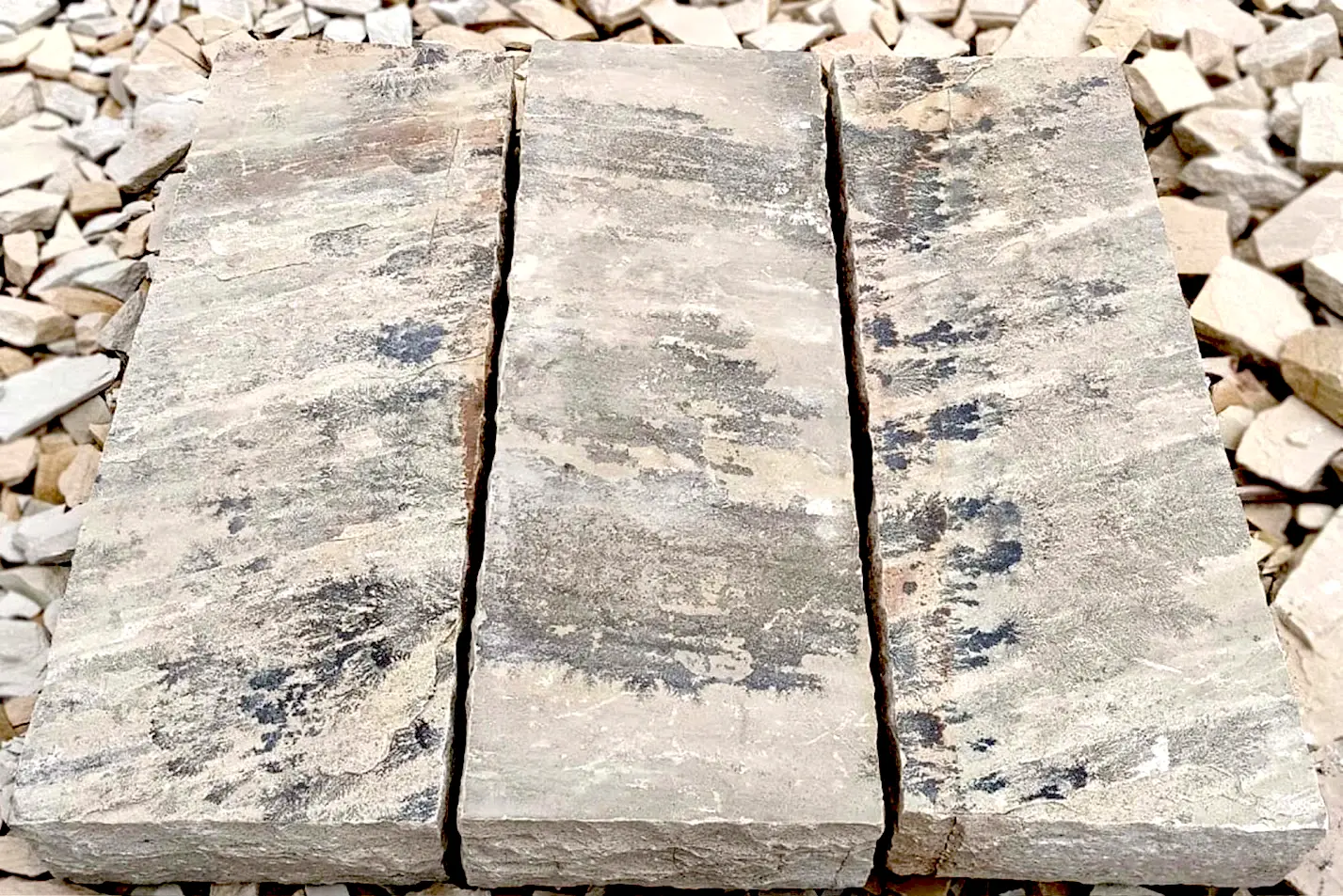 Fossil Mint Sandstone is a unique sandy buff stone characterized by beautiful, fern-like fossil patterns that naturally occur on its surface. While the base color is a warm minty cream, it is often complemented by blazing orange, rustic brown, and pink mineral deposits. This distinct appearance, combined with its strength and durability, makes it a favorite for patios, garden paths, and feature walls.